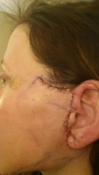 Bây giờ mình đã có thể che vết bầm và sẹo bằng BB Cream dễ hơn rồi. Hơn nữa bây giờ cũng chỉ còn vết bầm bên dưới mắt nữa thôi mà không phải ai cũng để ý thấy nên cũng không cần bận tâm lắm. Các vết mổ đều nằm ẩn trong các đường cong của tai và đường chân tóc nên cũng không lo bị lộ mà nếu có thì cũng chỉ cần phủ phấn là có thể che đi rồi.