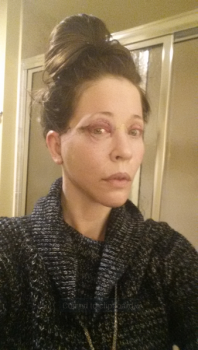 Sau khi cắt mí trên, mắt mình rất là khô luôn ấy. Nếu phải nhìn máy tính lâu thì mí mắt còn dễ bị sưng húp và đỏ nên thường xuyên phải chườm đá và nhỏ thuốc. Mình vừa mới vệ sinh vết mổ xong, không biết là có cái gì đen đen dính vào nữa, trông hơi bẩn nên phải cọ nhẹ mới hết. Tại đèn trong phòng tắm nên vết mổ nhìn hơi đỏ hơn thực tế một tí. Bây giờ vết mổ đã nhạt màu đi nhiều rồi nên chỉ cần trang điểm và xõa tóc ra là có thể dễ dàng che đi nhưng mình thấy cũng không cần thiết lắm. Vì cả ngày nay nhiều việc quá nên tóc mình có hơi bết, mặt cũng phờ phạc nữa và vẫn phải đội mũ để che đi chỗ vết mổ. Mọi người thông cảm nhé. À, mình vừa bước sang tuổi 44 nên lần phẫu thuật này như là món quà mình tự thưởng cho bản thân vậy.