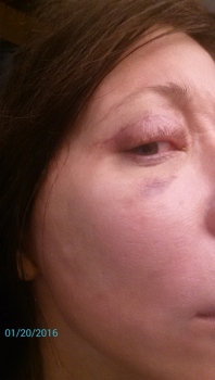 Ngày mai là mình sẽ được cắt chỉ. Giờ thì vẫn bị bầm tím dưới mắt và sưng, ngoài ra mình còn thấy hơi khó chịu ở chỗ gò má nữa. Chắc là do chưa quen nên mới thế.