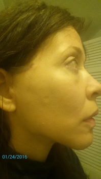 Đây là ảnh chụp tối nay - ngày 15 sau phẫu thuật. Trong ảnh này mặt mình chỉ đang có BB cream và phấn phủ không màu thôi. Ngày trước mỗi lần nhìn vào gương là mình thấy chán khủng khiếp vì má và cổ bị chảy xệ, bên dưới cằm còn bị chùng hẳn xuống thấy rõ luôn. Bây giờ chỗ da đấy đã biến mất rồi. Ảnh này mình chụp buổi tối nên phải bật đèn flash. Mai mình sẽ cố gắng chụp rõ hơn nhé.