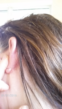 Ảnh chụp tai phải của mình là khi không có BB cream còn tai trái thì có BB cream. Mình còn đăng cả ảnh chụp bên mắt bị khô nữa. Nếu nhìn gần thì các bạn có thể thấy phần lòng mắt của mình trắng hơn bình thường còn phần còn lại thì vẫn hơi hồng. Bác sĩ bảo là mỗi người một khác, không phải ai cũng bị khô mắt nhưng nếu bạn cũng có ý định cắt mí trên thì nên chuẩn bị trước nhé.