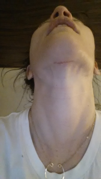 Ảnh này mình chụp trong nhà vào buổi tối nên nhìn không được rõ lắm. Với cả lúc này vùng dưới cằm của mình vẫn còn BB cream nên nhìn không rõ vết mổ lắm. Sau khi rửa mặt mình sẽ post ảnh khác nhé.