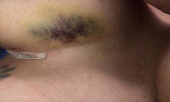 Tôi đã bắt đầu tập luyện sau 3 tuần kể từ khi làm Combo ngực bụng nhưng đột ngột bị bầm tím to ở ngực phải, có phải là tụ máu không?