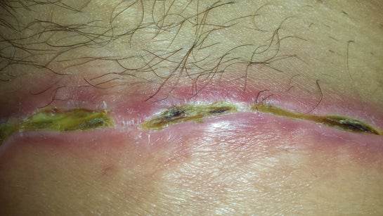 Bốn tuần sau phẫu thuật mà vết thương vẫn chưa khép miệng và có những chỗ bị đen?