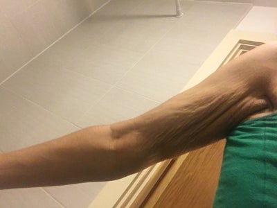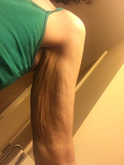 Tôi chưa bao giờ giảm cân quá nhiều cả nhưng cánh tay trái của tôi bị chảy xệ như thế này (cánh tay phải thì vẫn bình thường). Tôi có hơi thừa cân một chút nhưng không đến nỗi bị béo phì. Vậy đấy là do mỡ hay...