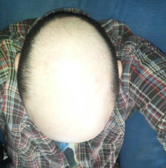 Đây là tình trạng hói độ 6-7, tức là mức độ hói cao nhất ở nam giới. Một số nam giới có thể tiến hành cấy tóc nếu vùng cho tóc của họ có mật độ tóc rất cao. Bạn sẽ cần 6000-8000 mảnh ghép tóc để có thể có kết quả tốt, hoặc dùng ít mảnh ghép hơn nhưng kết hợp cấy tóc và phun xăm thẩm mỹ nếu bạn nhất quyết phải có tóc trên đầu. Giải pháp tốt hơn là phun xăm thẩm mỹ và cạo sạch đầu.