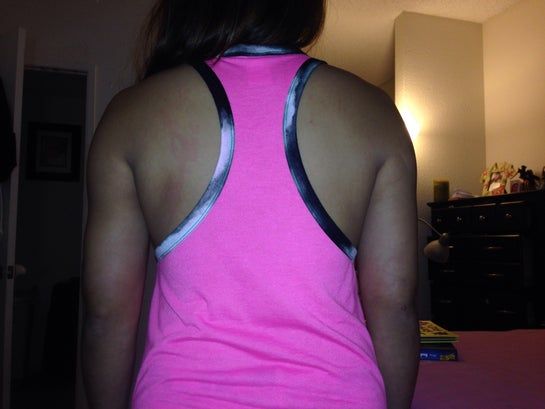 Dường như chúng phát triển to ra trong ngày. Khi tôi tới buổi tái khám sau 6 tuần, bác sĩ nói nó chỉ là sưng nề. Sưng nề chưa giảm xuống dù đã 5 tháng sau hút mỡ. Ấn vào thì hơi mềm mềm, nhưng không phải cảm giác lỏng lẻo như có nước. Nếu tôi nằm thẳng lưng thì chúng lặn mất tăm, nhưng đứng lên thì chúng lồi ra. Tôi vẫn mặc đồ nịt cả ngày do bị sưng nề. Nếu đứng và gập người về phía trước thì vùng da ở vị trí đó cũng sẽ treo lủng lẳng.