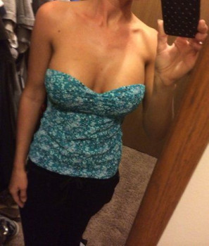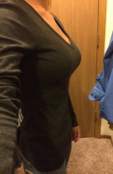 Ảnh cho thấy vẻ ngoài túi độn 350cc độ nhô cao của mình sau 5 tháng dưới lớp áo cổ trễ. Mình đang mặc áo ngực 34dd Victoria Secret và áo phông. Mình nghĩ trông chúng to hơn trong một số loại áo khác nhưng vẫn cần mặc áo nâng ngực để có được hình dáng ngực như mình mong muốn, đó cũng là lý do tại sao mình muốn đặt túi độn to hơn kết hợp khâu nịt ngực bên trong. Khi mặc áo và áo ngực 34dd thực sự rất yêu chúng, chỉ mong khi để ngực trần cũng có được cảm giác hài lòng như vậy – đây sẽ là mục tiêu của mình và mình nhất định sẽ hoàn toàn hài lòng với chúng.