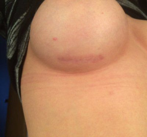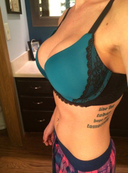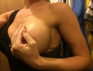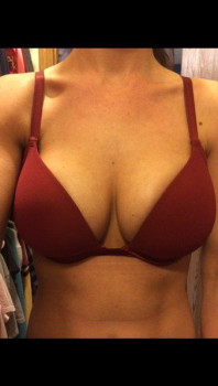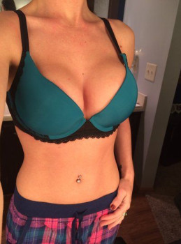 Mình mặc vừa size 32DD hầu hết mọi loại áo ngực, trừ Victoria secret thì vừa size 32ddd. Đặt túi 350 độ nhô cao khiến mình có nhiều ngực nhưng mình không cảm thấy nó quá bự. Nếu mặc một chiếc áo ôm sát trông chúng khá to. Hai vết sẹo vẫn giống như cũ. Mình vẫn chưa cảm thấy chúng hoàn toàn là của chính mình và vẫn không thích chồng nghịch ngợm sờ soạng lên chúng, thật là tệ. Mình lúc nào cũng mặc áo ngực, hầu như 95% thời gian là thế, loại áo không đệm và không gọng.