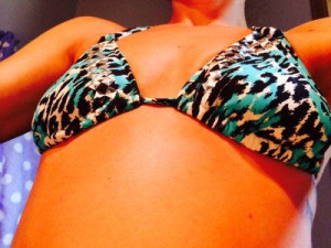 Mình đã thử mặc lại đồ bơi xem có vừa không. Mấy bộ đồ bơi của mình đều là cỡ nhỏ và thực sự trông không tệ lắm. Điều này cũng chứng minh túi độn độ nhô cao trông tự nhiên vì ngực mình đã bắt đầu trông tự nhiên, mình muốn trông “bán” tự nhiên nên mình rất vui khi vẫn có thể khiến ngực trông như đồ giả khi mặc một chiếc áo phù hợp. Mình đã rất chú trọng tìm loại áo có thể khiến ngực trông tự nhiên hơn nên mấy bạn có thể thấy ngực mình không chỉ là những quả bóng tròn, mà còn có độ dốc tự nhiên mặc dù túi độn là loại có độ nhô cao.