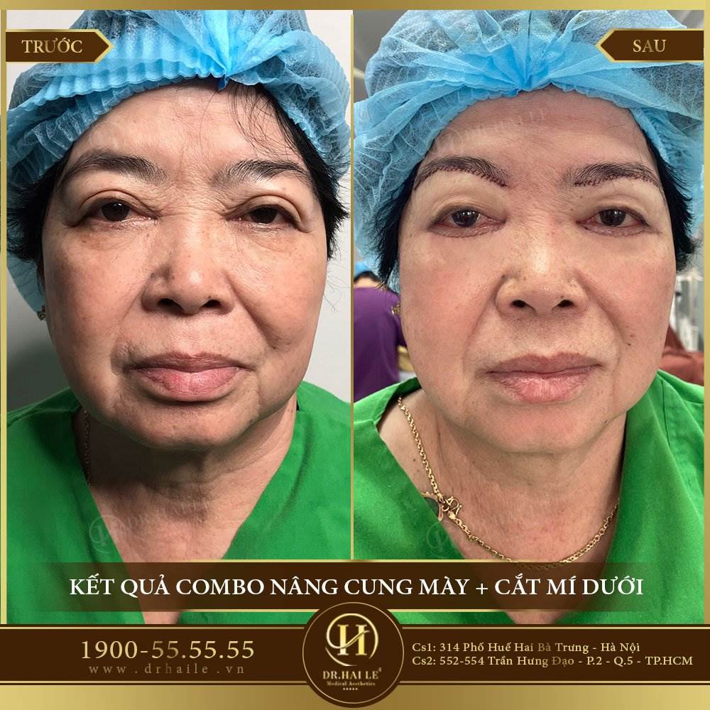 Khách hàng nữ kết hợp cắt mí dưới và treo cung mày.