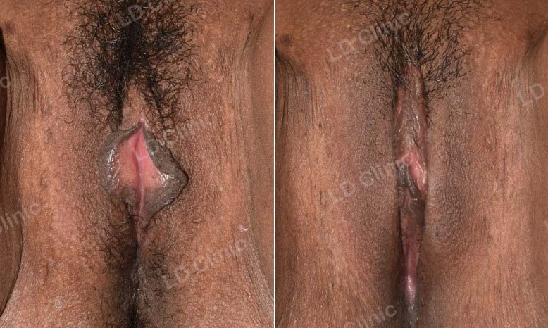Khách hàng nữ 29 tuổi phẫu thuật tạo hình thu nhỏ môi bé bằng kỹ thuật cắt hình chữ V. Cô ấy đồng thời cũng thu gọn và nâng mũ âm vật.