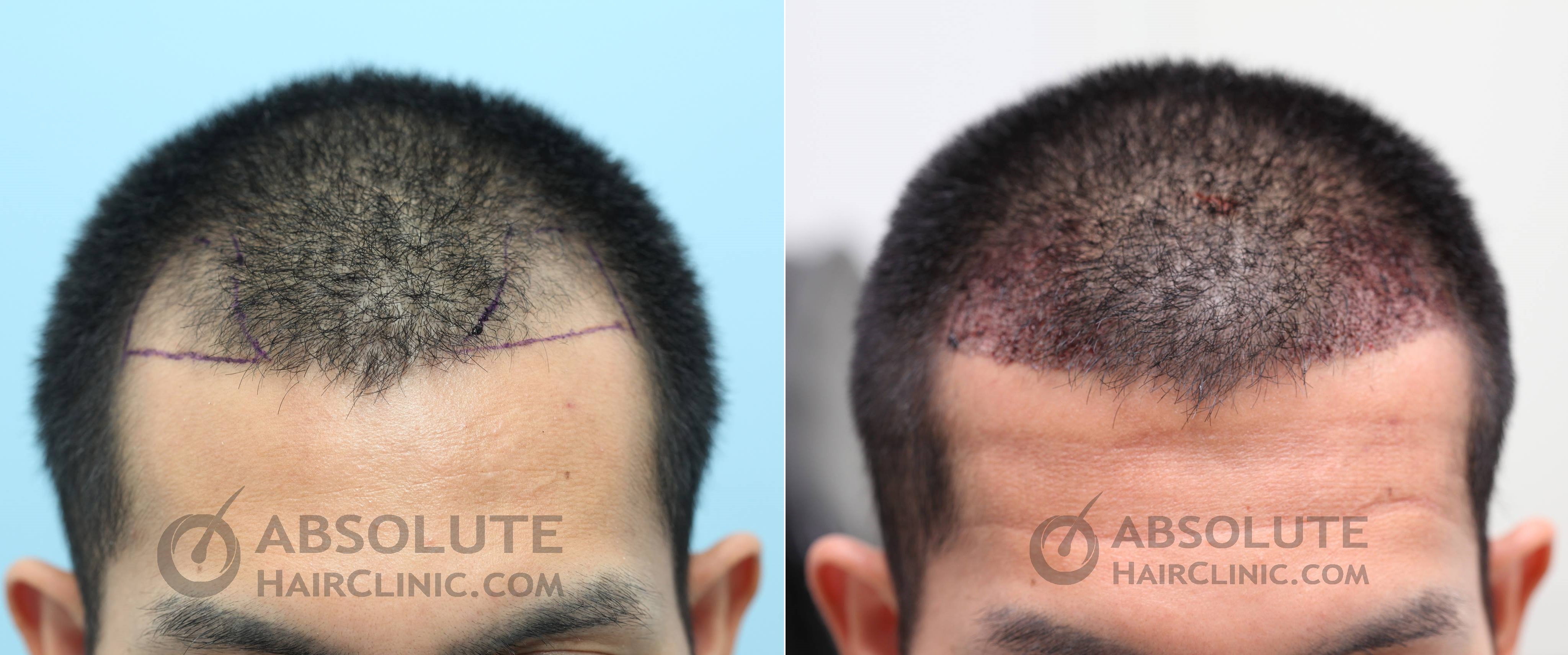 Kỹ thuật cấy tóc FUE, chiết 1167 nang tóc phía sau đầu cấy chuyển vào vùng hói chữ M.