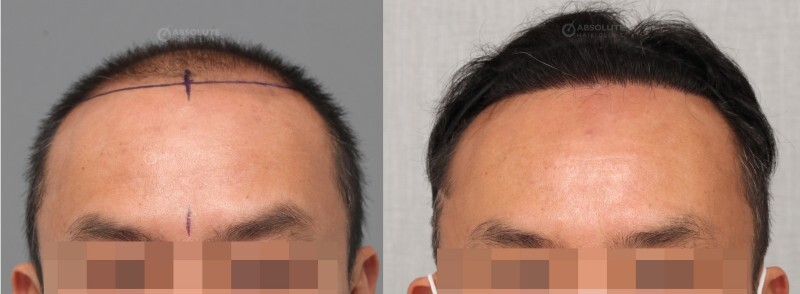 Kết quả sau cấy: Tóc mọc dày đẹp, đường chân tóc đã hạ thấp, đỡ hói hơn.
