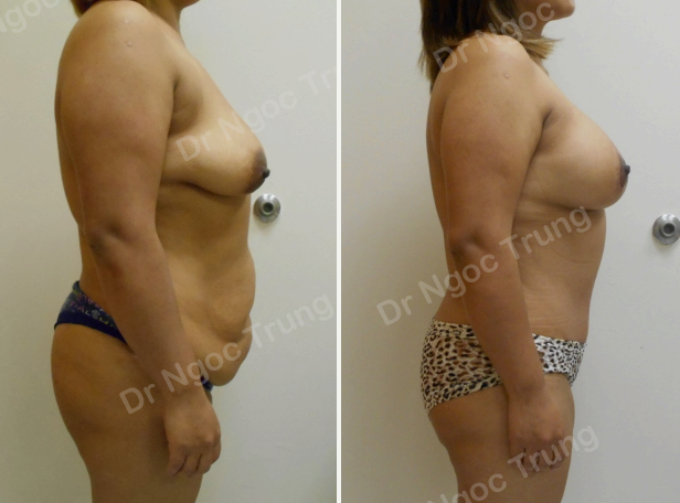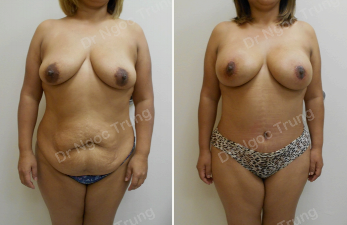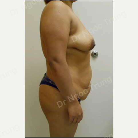 Khách hàng nữ có ngực chảy xệ, quần vú giãn rộng. Bụng nhiều mỡ, da bụng nhăn nheo