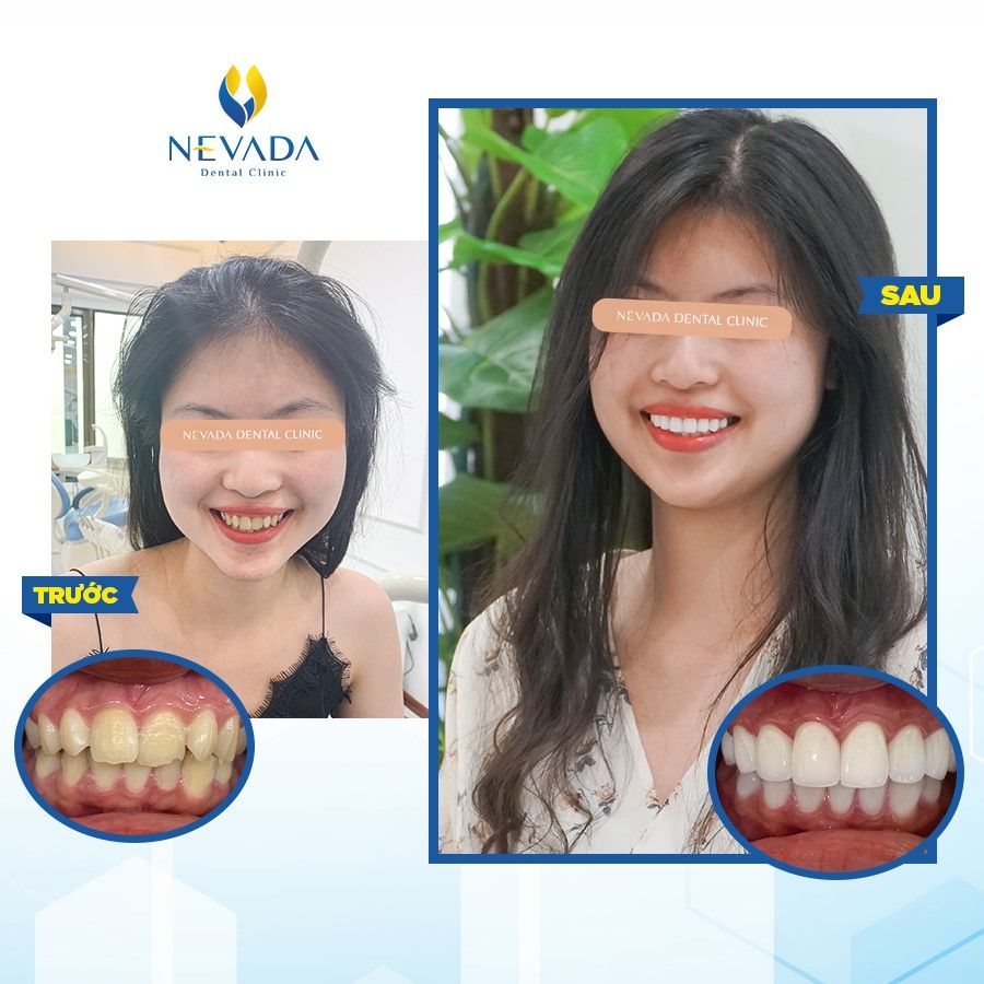 Tình trạng: hàm răng ố vàng, 2 răng cửa bị mẻ, khấp khểnh.