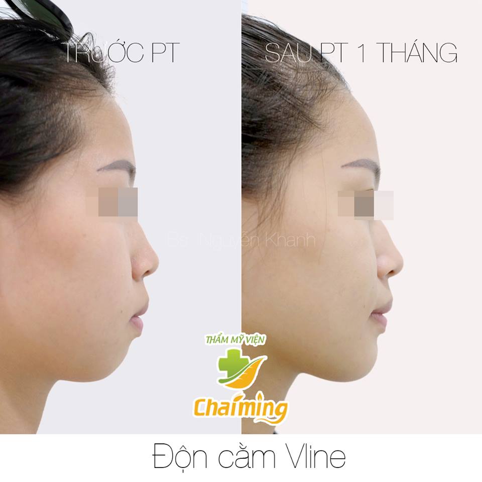 Độn cằm V-line trước và sau phẫu thuật 1 tháng