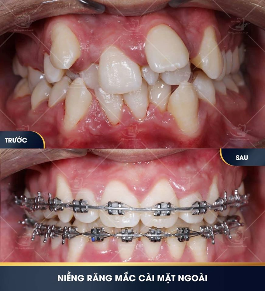 Tình trạng: răng khấp khểnh chen chúc nặng, có răng thừa giữa 2 răng cửa hàm trên.