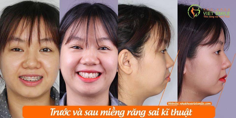 Kết quả: Sau 1,5 năm KH hết vẩu, khớp cắn tốt hơn, góc mũi môi đẹp hơn, nhìn mặt gọn hơn.