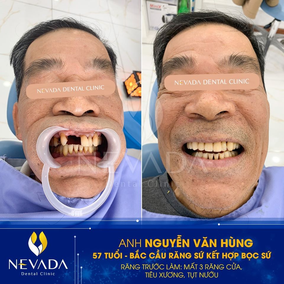 - Mất 3 răng cửa lâu ngày, tiêu xương