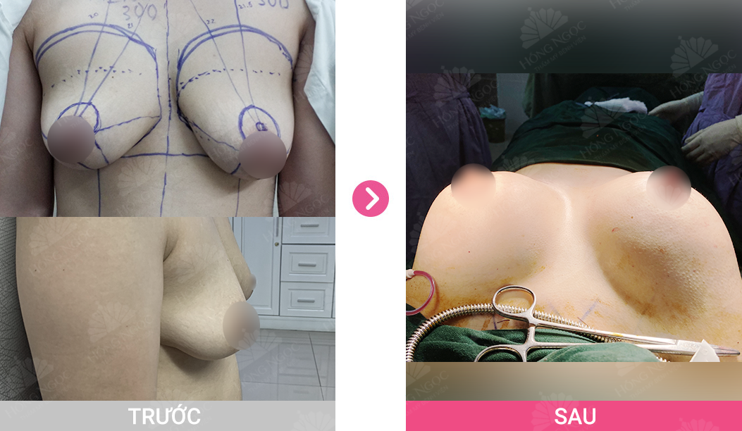 Nâng ngực đặt túi 300 cc kết hợp treo sa trễ - ca 7