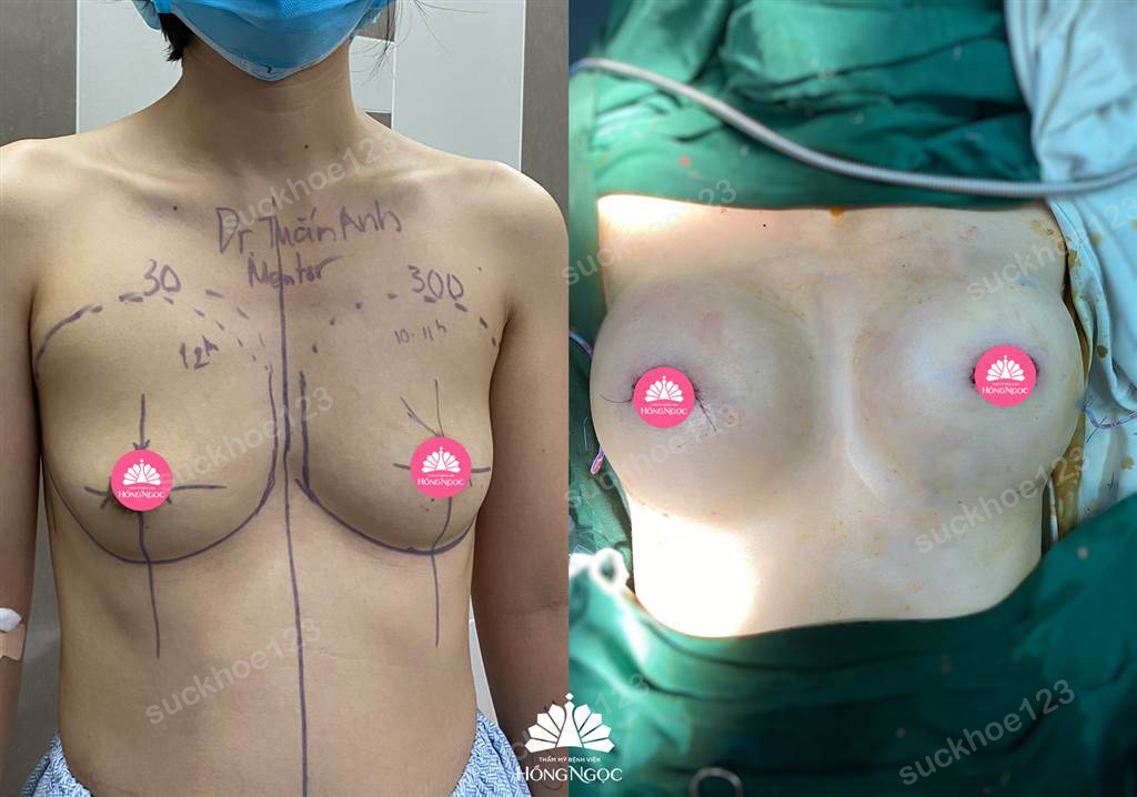 Nâng ngực đặt túi Mentor 300 cc, đường quầng vú - ca 11