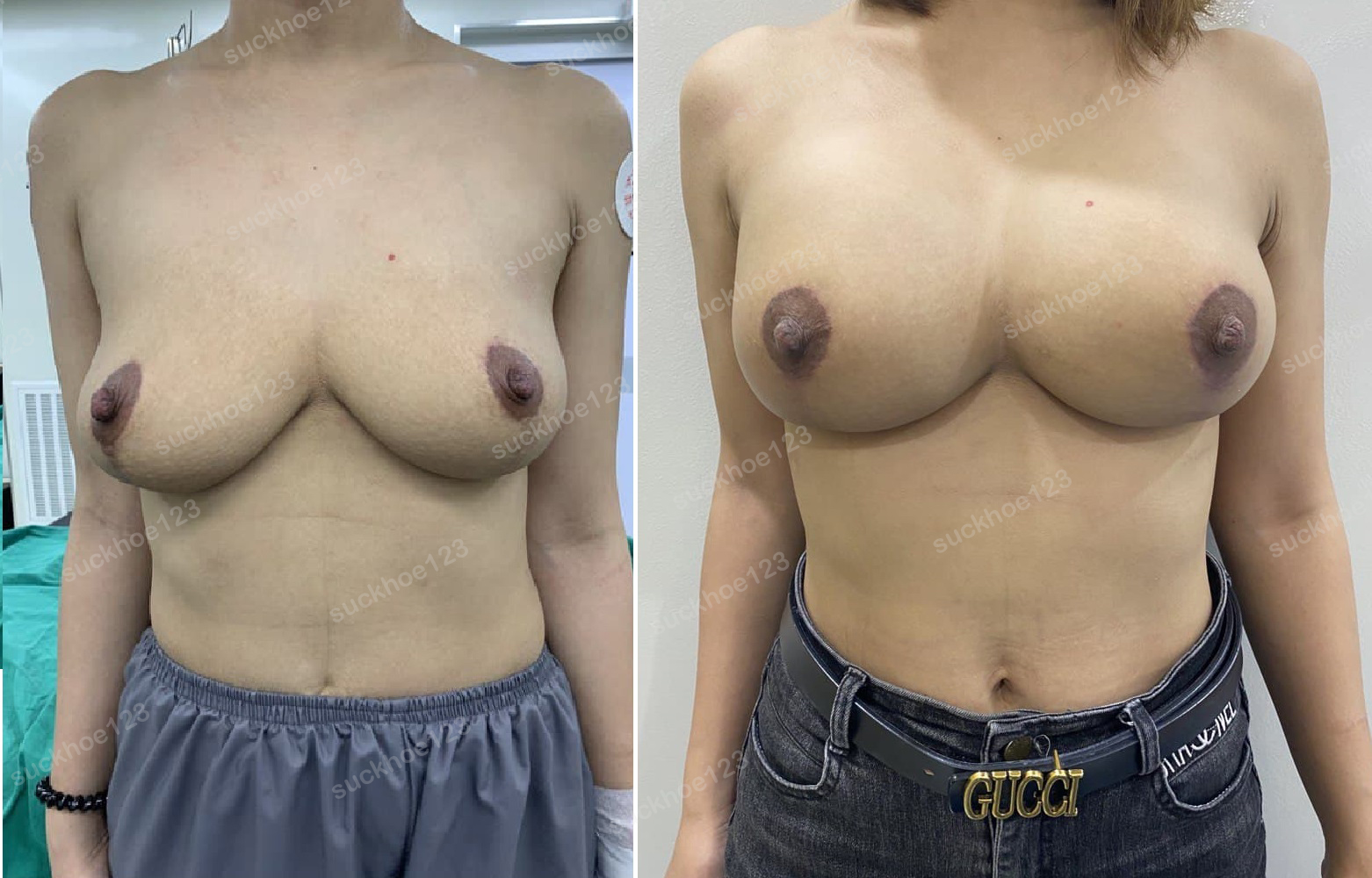 Khách hàng ngực chảy xệ ( đã từng phẫu thuật treo sa trễ)