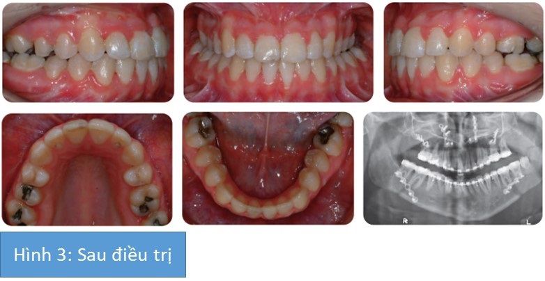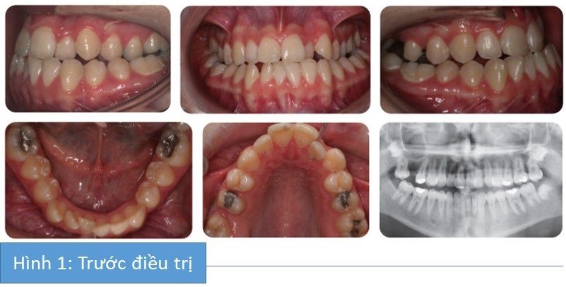 Bệnh nhân nữ 17 tuổi hiện có sai khớp cắn hạng III trên nền xương hạng III trung bình với tăng kích thước dọc phức tạp bởi lệch đường giữa, R16 mất sớm và chen chúc ở cả 2 cung răng (hình 1)
