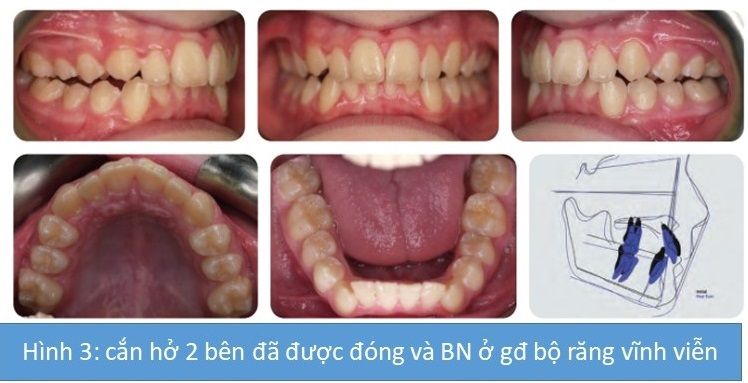 - Thun kéo loại II được sử dụng sớm trong pha khí cụ cố định. Cậu bé này liên tục đeo khí cụ Twin Block vào ban đêm trong khoảng 6 tháng. Cắn hở 2 bên đã được đóng và bây giờ cậu bé đang ở giai đoạn bộ răng vĩnh viễn (Hình 3). Độ cắn chìa giảm còn 4 mm.