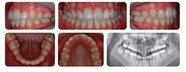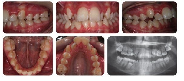 Bệnh nhân nữ 12 tuổi bị sai lệch khớp cắn hạng II tiểu loại I trên nền xương hạng II trung bình với kích thước dọc tăng, phức tạp bởi độ cắn chìa lớn (12mm), răng hàm trên và hàm dưới chen chúc. Bệnh nhân thường bị bạn bè trêu chọc về diện mạo răng-mặt.