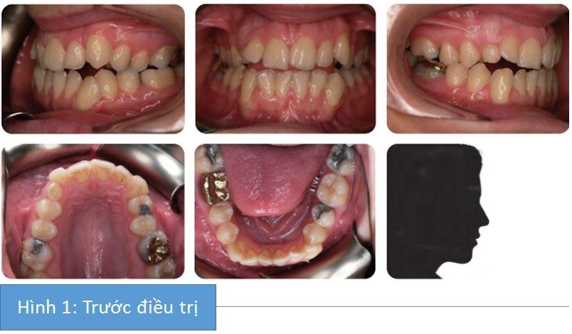 Bệnh nhân nữ 22 tuổi có tương quan răng cửa hạng III trên nền xương hạng I với chiều cao tầng mặt dưới phía trước tăng. Môi khép kín và hình ảnh mặt nghiêng tốt. Tất cả các răng vĩnh viễn đã xuất hiện trong miệng, ngoài trừ R13 và răng hàm lớn thứ 3. Vẫn còn răng hàm lớn thứ 3. Bộ răng đã được phục hồi tốt với R46 và R26 có phục hồi lớn bằng vàng.