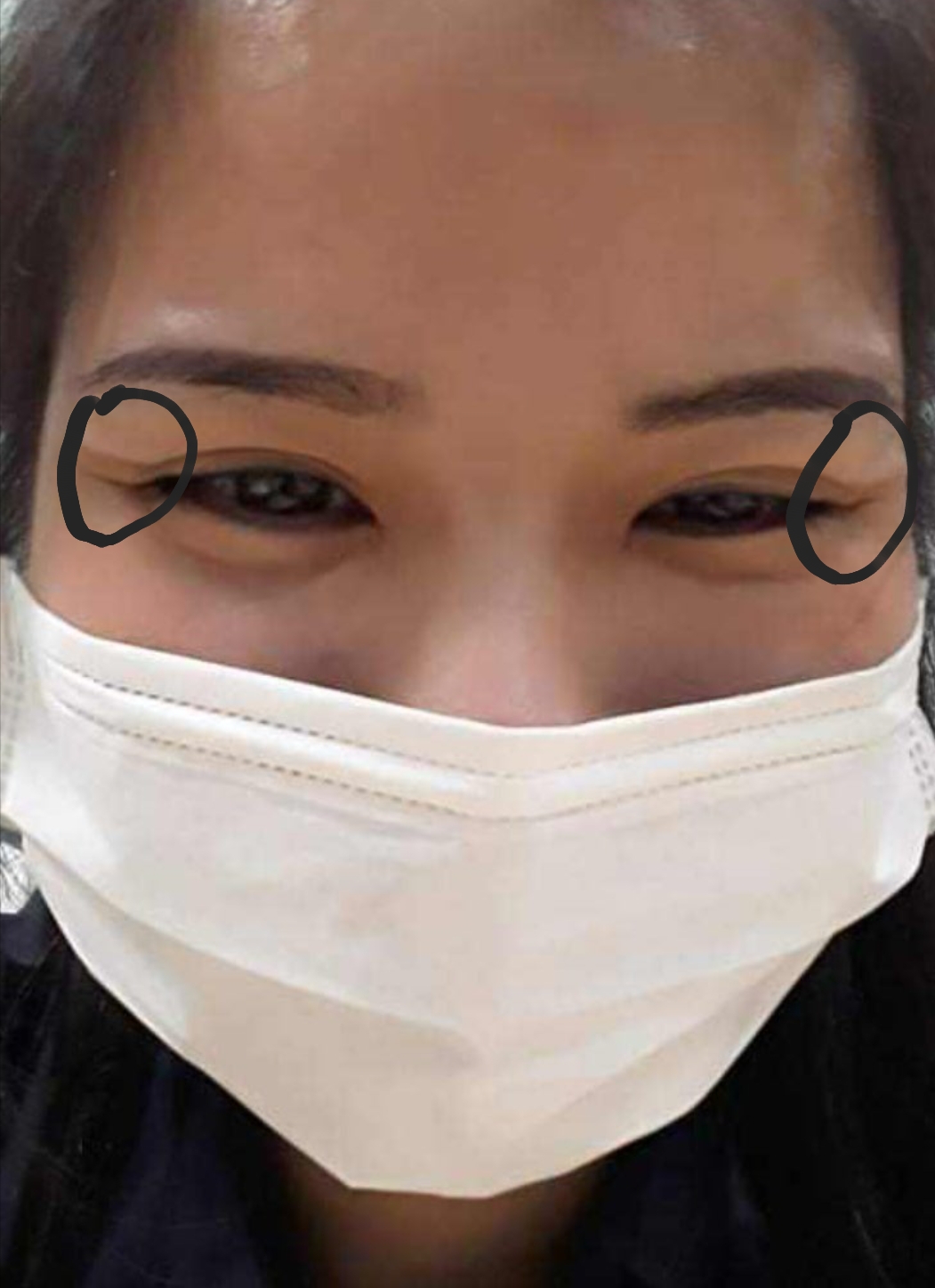 Mí mắt sau khi cắt gần hai tháng vẫn còn thâm đen và nề
