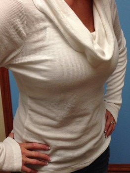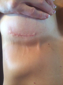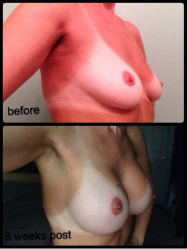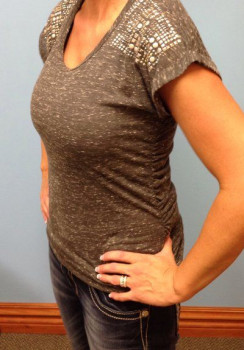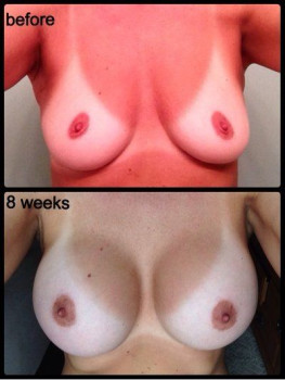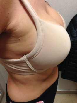 Mình cao 1m77, nặng 74,8kg, 36 tuổi có 2 con, một bé 10 tuổi, một bé 6 tuổi và đã kết hôn được 15 năm rồi. Mình có vóc người thể thao và thích tập luyện khoảng 3-4 lần mỗi tuần. Sau khi cai sữa mình không còn hài lòng với bộ ngực xẹp lép nữa. Thật lòng thì từ trước đến giờ mình chưa bao giờ nghĩ sẽ có lúc bản thân muốn thực hiện một ca phẫu thuật thẩm mỹ. Mình không phản đối cũng chẳng ác cảm gì với chuyện này, chỉ là cá nhân mình chưa bao giờ muốn thôi. Nhưng sau vài năm mọi thứ đã thay đổi rất nhiều. Ngực mình khoảng size 38B/C nhưng vấn đề là mặc áo ngực không thể vừa vặn đẹp mắt được, nên chỉ toàn mặc áo ngực thể thao hoặc kiểu áo ngực yếm. Phần thân trên của mình khá dài và ngực đã bắt đầu chảy xệ xuống thấp hơn, bây giờ trông chúng chẳng khác nào sườn núi dốc, bè ra ở phía dưới, nhưng lại xẹp lép ở bên trên .