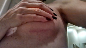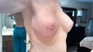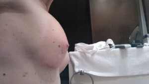 Thực tế, ngực tôi thậm chí còn không được cup A, nếu có một kích cỡ âm nào đó như –AAA thì đó chính là kích cỡ của tôi. Hi vọng sau nâng, ngực có thể lên cỡ C đầy, nhưng thật lòng tôi cũng không hiểu lắm về mức dung tích cc/ml. Chỉ biết là mình sẽ đặt túi gel silicon, qua đường mổ ở nếp gấp dưới vú. Tôi đã làm việc với bác sĩ phẫu thuật thẩm mỹ của mình trong suốt nhiều năm vì chứng bệnh ung thư da, vì vậy hoàn toàn có thể tự tin và thoải mái với ông ấy. Ông ấy thậm chí còn cho tôi hưởng chính sách giảm giá thường xuyên nữa.