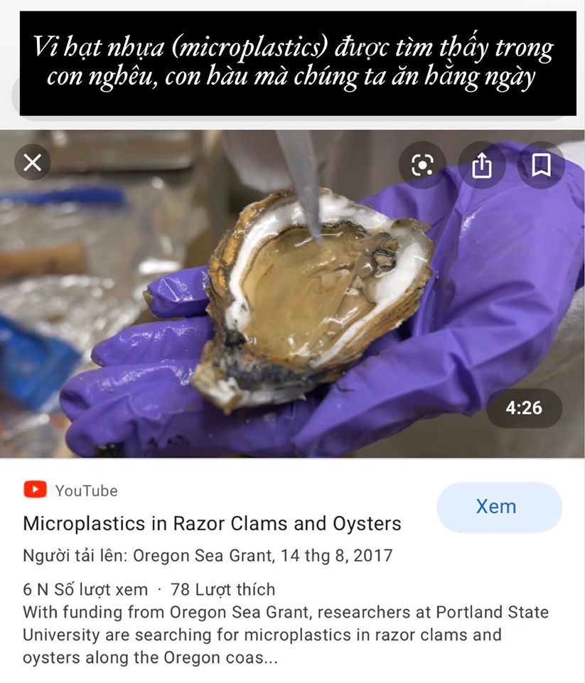 Em không tưởng tượng được chuyện gì sẽ xảy ra khi em nuốt những hạt nhựa nhỏ li ti được ẩn mình trong món hào sữa nướng phô mai hấp dẫn mà chiều chiều em hay ăn ở quán ốc Oanh quận 4 nữa.