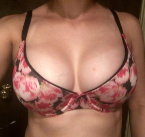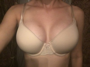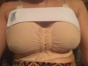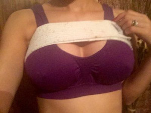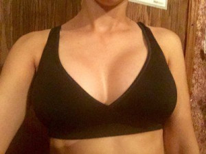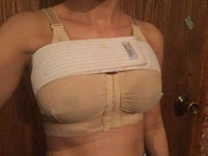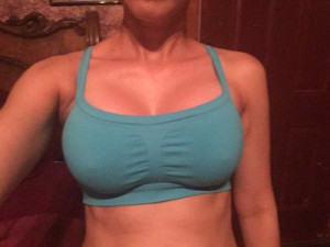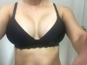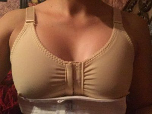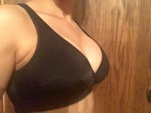 Cảm giác thật tuyệt khi được nằm nghiêng ngủ mọi người ạ. Mình vẫn không thể mặc được áo ngực có gọng hoặc tập bất kỳ bài tập nào ở phần trên cơ thể, trong khi đã tập các bài tập cho phần dưới cơ thể từ tuần thứ 2 rồi. Mình vẫn chưa đo size áo ngực, nhưng tất cả áo Victoria Secret 332D đều không vừa nữa rồi. Nhờ xem video hướng dẫn cách matxa của một chị trên này mà mình đã làm theo nên cảm thấy chúng đã mềm mại hơn rồi, đêm bắt đầu mặc áo ngực phẫu thuật vì có cảm giác mình cần cố định ngực khi ngủ nằm nghiêng. Mình cũng bắt đầu sử dụng đai ngực để giúp chúng hạ xuống tốt hơn. Đây là một vài bức ảnh về hình dạng chúng ở thời điểm này, lại mặc vừa chiếc áo ngực cũ mình dùng hồi mang thai và sau sinh; cả hình vết sẹo nữa, mình không bôi bất kỳ thứ gì lên chúng.