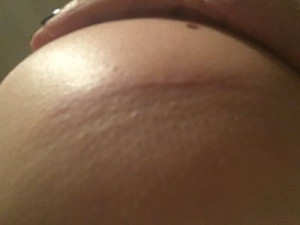 Không có nhiều thay đổi lắm mọi người nhỉ, vẫn còn cao và sưng. Hi vọng sẽ sớm thấy chúng thay đổi. Mình xoa dầu rạn da để matxa cho chúng đấy, xin lỗi vì trông chúng hơi bóng nhé, mình chụp ảnh ngay sau khi matxa hihi.