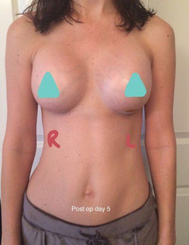 Kể từ hồi lớp 6 tôi lúc nào cũng muốn có được một bộ ngực to hơn. Dự định sẽ làm ngực luôn luôn là chủ đề tám chuyện chính trong các cuộc trò chuyện của tôi, vấn đề chỉ là khi nào. Sau khi sinh hai đứa và cho con bú trong một năm rưỡi chỉ càng khiến tôi quyết tâm hơn với ý định chắc chắn sẽ làm ngực của mình. Đầu tiên, bộ ngực cho con bú của tôi rất tuyệt, nhưng sau khi cai sữa chúng phẳng xẹp không khác gì những chiếc bánh kếp. Tôi đã quyết định tìm đếm một bác sĩ phẫu thuật, người đã thực hiện vô số những quy trình nâng ngực và được mọi người đánh giá là rất hoàn hảo. Tôi chỉ đến tham vấn với ông ấy thôi và cảm thấy không cần tham vấn nhiều người khác. Trong cuộc tham vấn đầu tiên tôi cũng lên kế hoạch phẫu thuật luôn, tôi luôn có cảm giác vị bác sĩ này sẽ mang lại cho mình kết quả tự nhiên nhất.