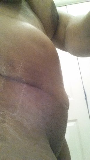 Ngày thứ 43 kể từ khi làm combo ngực bụng và trông tôi như thế này đây, bác sĩ đã cố chọc hút nhưng không có dịch