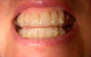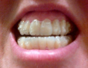 Sau đó, bác sĩ gắn các nút chặn lên răng mình, đó là những cục nhỏ có màu giống như răng, có tác dụng giữ khay niềng cố định tại vị trí. Ban đầu, mình dự tính là làm trong khoảng một tiếng nhưng quá trình thực tế lại mất đến một tiếng rưỡi. Bước cuối cùng là bác sĩ đặt khay niềng lên răng. Lúc lắp vào răng thì mình cảm thấy hơi cộm và vướng nhưng không đau. Sau đó thì bác sĩ bảo mình thử tháo khay niềng ra. Mình cứ nghĩ là dễ nhưng thử mãi mà không được nên cuối cùng bác sĩ phải gỡ ra cho mình rồi lắp lại. Lúc ra về và soi gương thì mình hầu như khay niềng không hề bị lộ giống như niềng kim loại truyền thống. Mình thử tháo niềng nhưng mà nó bám rất chắc. Mình cố cạy một lúc thì được nhưng khá đau. Tất nhiên niềng răng là phải đau rồi, còn ăn uống khó khăn nữa chứ.