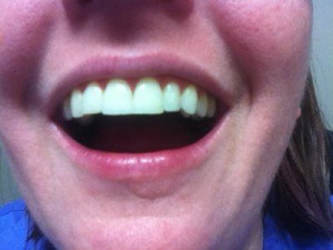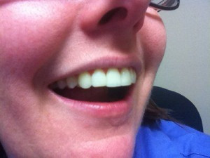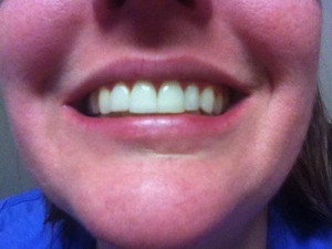Sau đó thì bác sĩ tiến hành dán bonding răng cửa giữa và răng cửa bên của hàm trên. Miếng dán composite có màu y hệt như màu răng thật, nếu người khác nhìn qua thì sẽ không thể biết được đâu là răng thật, đâu là miếng dán luôn. Mình thì vẫn có thể cảm nhận thấy miếng dán vì nó cứng và có cạnh nên hơi khó chịu nhưng chắc dần dần sẽ quen. Miếng dán làm cho chiếc răng cửa bên rộng và dài hơn một chút nhưng không đến nỗi bất bình thường. Chiếc răng đó bây giờ nhìn khác với răng bên cạnh nhưng cũng không sao cả vì các răng đâu nhất thiết phải có cùng kích thước. Ngoài ra, bác sĩ còn dán composite vào cả chiếc răng cửa giữa ở bên trái của mình do bị mẻ. Mình cứ có cảm giác là bây giờ chiếc răng này trông dài hơn chiếc răng cửa bên cạnh. Mọi người có thấy thế không? Hay là tại mình đã quen với hình dạng chiếc răng cũ nên cảm thấy thế?