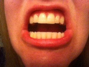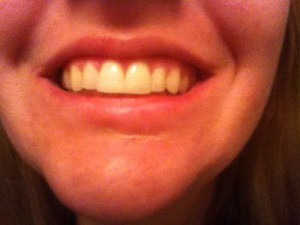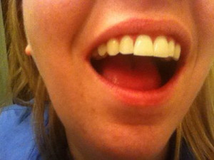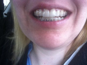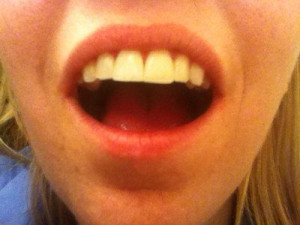 Bây giờ mình đã quen hơn với việc đeo chun trên răng và tự tin hơn khi giao tiếp với mọi người. Việc đeo và tháo dây chun kéo cũng đã trở nên dễ dàng hơn. Điều khó chịu nhất bây giờ là cứ mỗi khi mình ăn thì thức ăn lại bị kẹt trong răng trừ khi ăn các món ở dạng lỏng. Hơn nữa, cần phải đánh răng hơn 3 lần mỗi ngày. Nếu ở nhà thì điều này cũng không sao nhưng vào hôm đi làm thì rất bất tiện. Vì không muốn để người khác nhìn thấy thức ăn mắc trong niềng răng nên mình cứ phải đánh răng liên tục. Mình rất mong được nhìn thấy kết quả sau một tháng nữa. Vì không còn thay đổi nào khác nên mình chỉ đăng một bức ảnh chụp sự thay đổi ở hàm trên thôi.