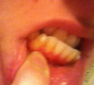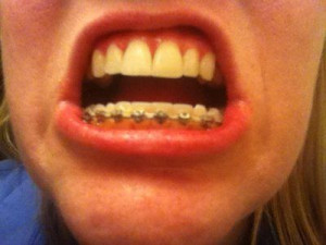 Hôm nay là ngày đầu tiên mình đeo niềng răng kim loại. Đêm qua mình phải tỉnh dậy lúc nửa đêm để đi vệ sinh và thấy miệng rất đau. Mình còn phải uống Aspirin để giảm đau nhưng không biết là có tác dụng hay không vì sau đó, mình đi ngủ ngay rồi đến sáng khi tỉnh dậy thì răng vẫn đau nên mình lại phải uống thêm một vài viên Aspirin nữa. Mọi khi vào bữa sáng thì mình thường ăn ngũ cốc trộn sữa nhưng hôm nay miệng mình đau đến mức chỉ có thể uống sữa và ăn đồ mềm. Khoảng 10 giờ sáng, như thường ngày thì mình có thói quen ăn một thanh ngũ cốc để bổ sung năng lượng nhưng hôm nay mình không ăn nổi. Mình phải chia ra thành từng miếng nhỏ nhưng lúc nhai vẫn rất khó chịu.