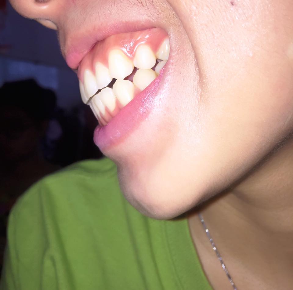 Răng cửa hàm trên và hàm dưới của tôi đều bị thưa như trên ảnh và ngoài ra tôi còn có tật đẩy lưỡi nữa thì nên niềng răng bằng niềng mắc cài hay niềng Invisalign?