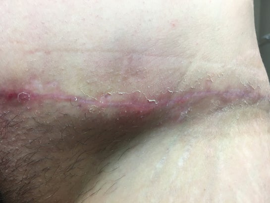 Vết sẹo tạo hình thành bụng của bạn không có gì bất thường. Nhưng tốt nhất vẫn nên hỏi ý kiến bác sĩ phẫu thuật thẩm mỹ trước. Tuy vậy thì khả năng cao là mát-xa và chăm sóc sẹo là vấn đề sẽ biến mất thôi.