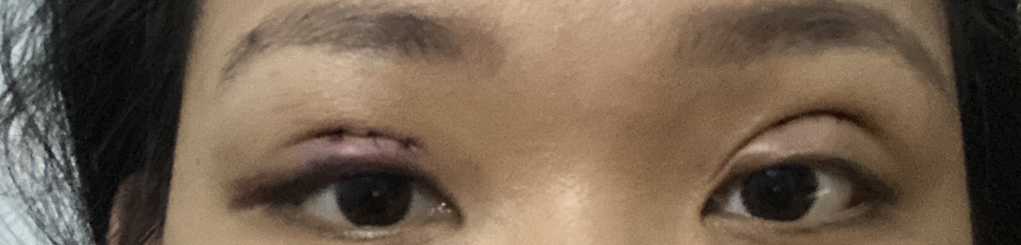 Chào bạn, sau khi cắt mí 1 ngày một bên mí sưng bầm, bên còn lại không bị và hai bên nếp mí trông không đều nhau là việc hoàn toàn toàn bình thường bạn nhé.