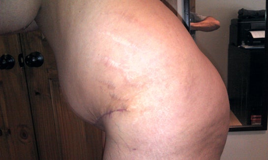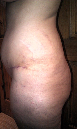 Bác sĩ bảo tình trạng này là bình thường, nhưng trong tất cả ảnh và video tôi đã xem, không có ai trông như thế này 5 tuần sau phẫu thuật cả. Đa số mọi người còn chẳng trông như thế này sau 2-3 tuần. Tôi bắt đầu lo lắng rằng đây sẽ là kết quả vĩnh viễn. Tôi đã chụp bức ảnh này sáng nay lúc mới ngủ dậy. Tôi vẫn bị sưng nhẹ vào buổi tối sau một ngày hoạt động tích cực. Tôi không mặc băng ép khi ngủ theo chỉ dẫn của bác sĩ.