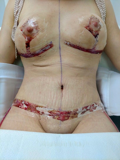 Tôi đã làm tạo hình thành bụng, treo ngực sa trễ và thu nhỏ ngực cách đây 2 tuần. Tôi biết là vẫn còn quá sớm và người ta bảo là tôi vẫn đang bị sưng nề, nhưng giờ tôi đang hoảng loạn và rất ghét kết quả phẫu thuật của mình. Hiện tại, bầu vú và núm vú trái to hơn bên phải. Sẹo tạo hình thành bụng thì cao hơn mép quần lót 3-5 cm. Phần bên phải của vết sẹo có vẻ đang hồi phục bình thường và khá phẳng, nhưng phía bên trái thì lại bị lồi ra, gần giống như mỡ thừa lòi ra phía trên cạp quần. Trông tôi có cần phẫu thuật không? Tình trạng này có bình thường không?