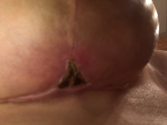 Bạn cần hạn chế hoạt động trong 3 đến 4 tuần sau khi phẫu thuật Combo ngực bụng Mommy Makeover. Có vẻ như bạn bị hoại tử da nhẹ và tụ máu. Hãy gặp bác sĩ phẫu thuật thẩm mỹ của bạn để được chọc hút, cắt bỏ và tư vấn chăm sóc vết thương.