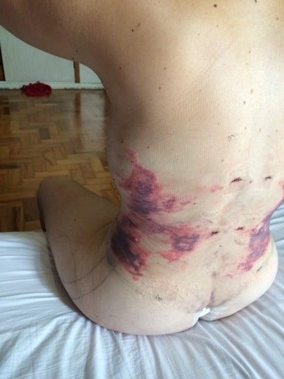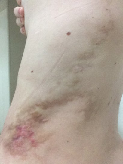 Đã hút mỡ bụng và ụ hông gần 3 tuần, vết bầm tím đang thay đổi – là bầm tím thường hay hoại tử?